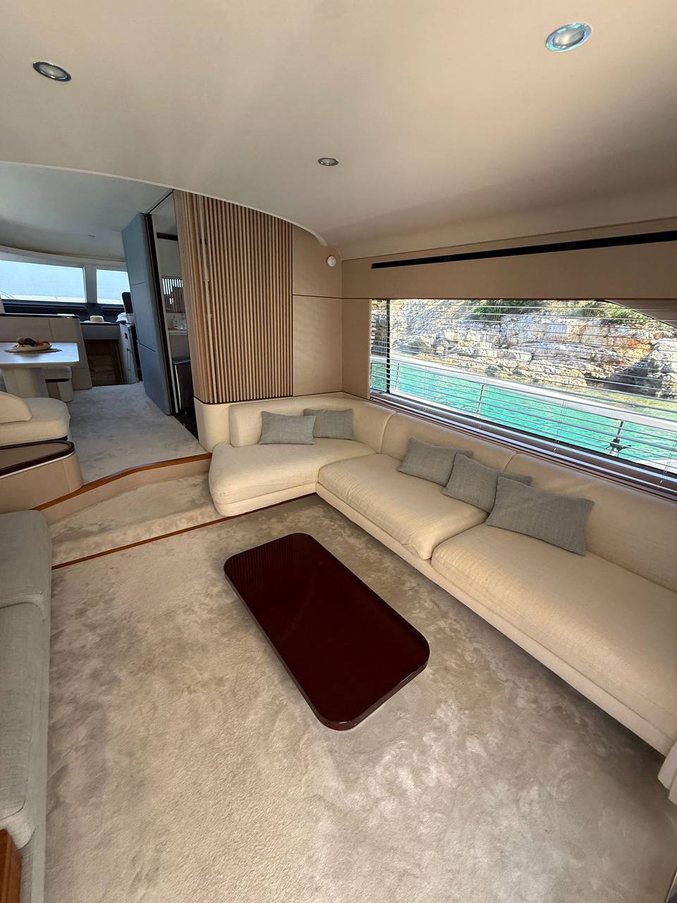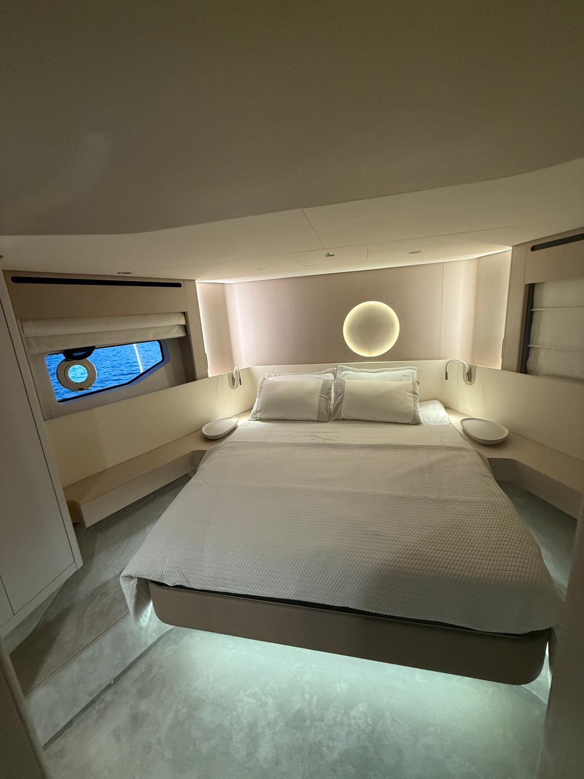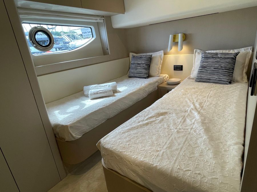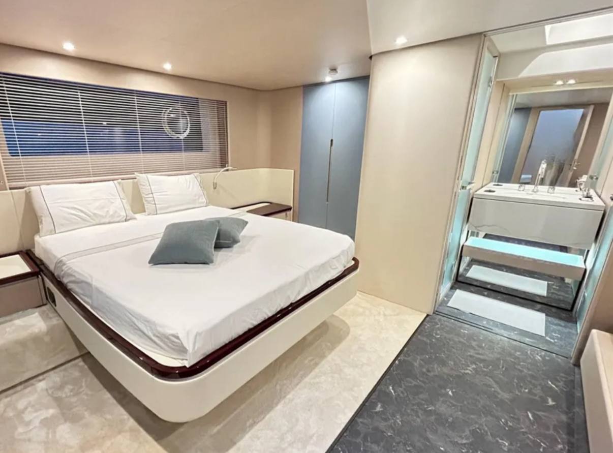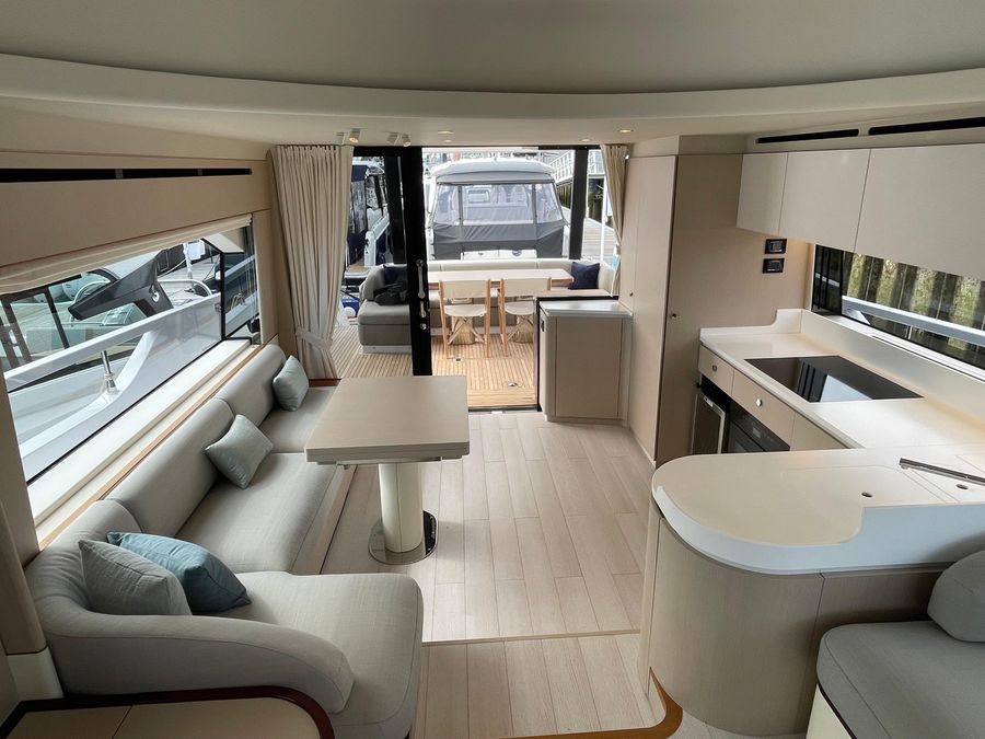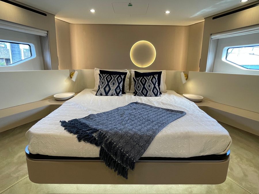 - The spacious and bright interior features a full-beam master suite, additional guest cabins, an enclosed galley, plush seating, and high-end finishes for ultimate relaxation. Designed for family or entertaining, with ample natural light and modern conveniences.