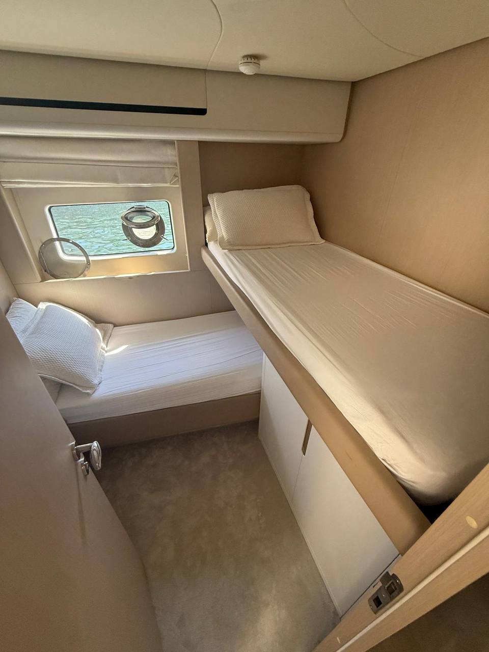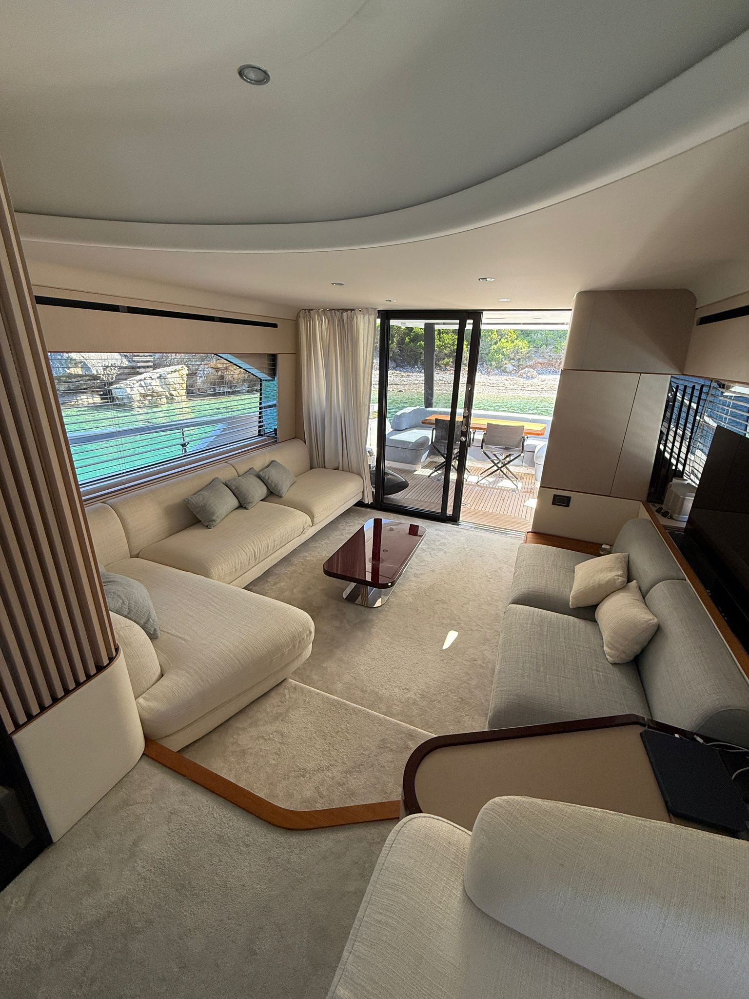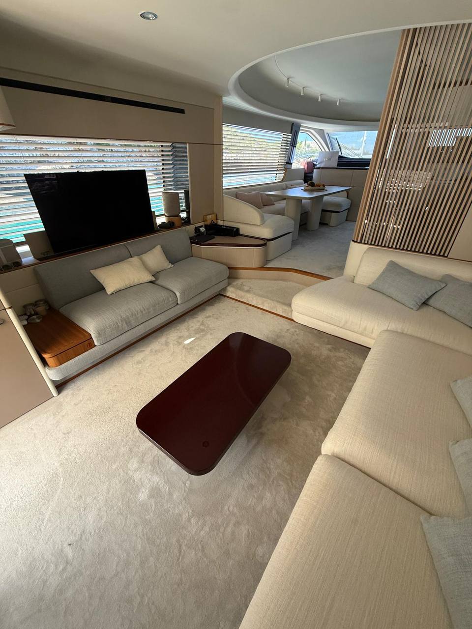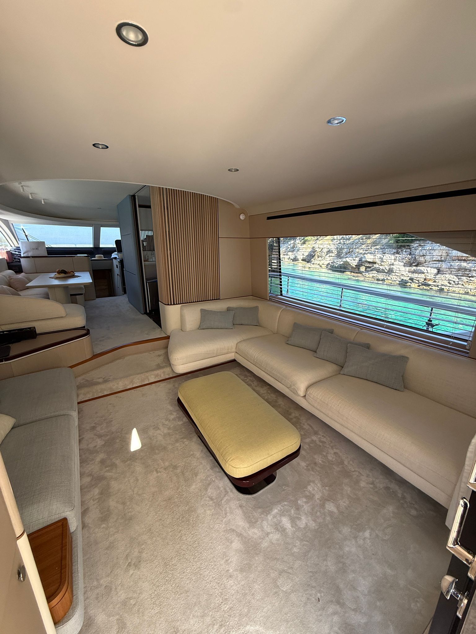- The spacious and bright interior features a full-beam master suite, additional guest cabins, an enclosed galley, plush seating, and high-end finishes for ultimate relaxation. Designed for family or entertaining, with ample natural light and modern conveniences.