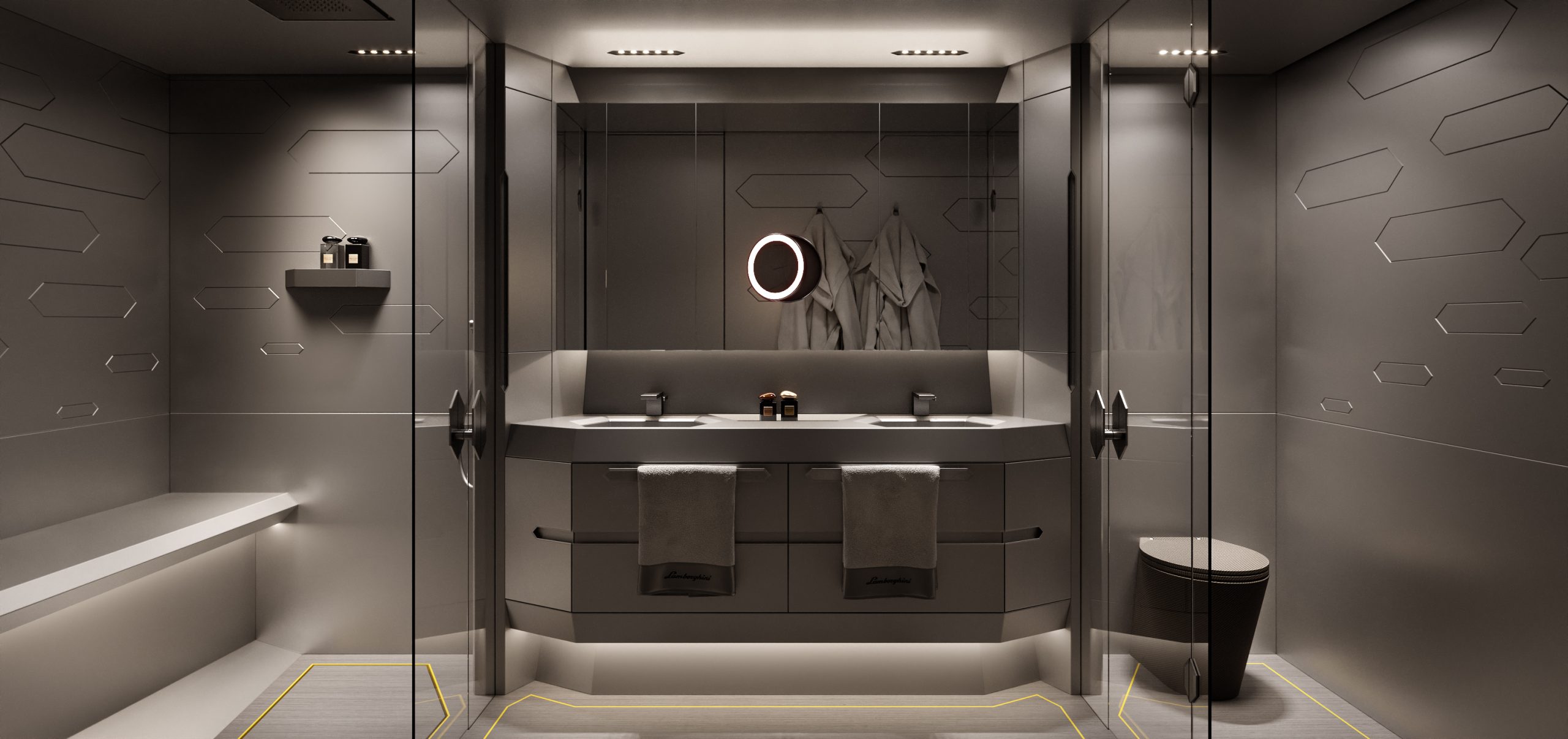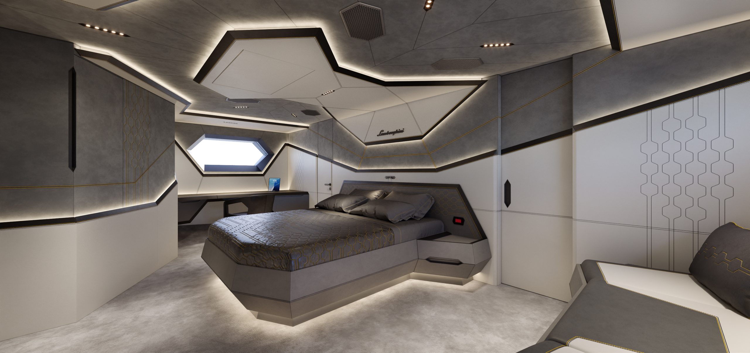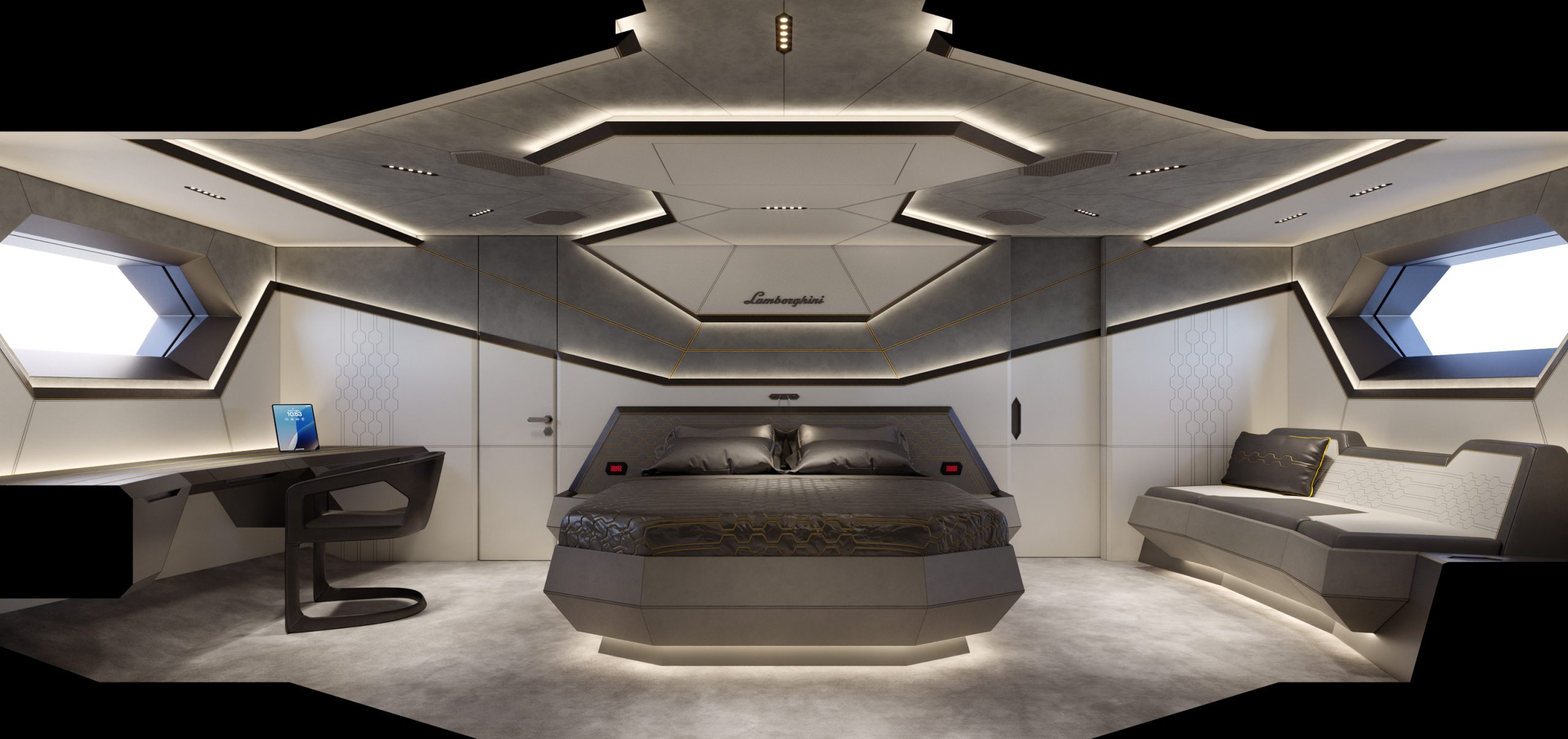 - The fully bespoke interiors draw directly from Lamborghini’s automotive DNA featuring hexagon patterns, Y-shaped elements, premium leathers, carbon accents, and customizable color schemes mirroring iconic Lambo models. Spacious, high-tech salons and cabins ensure ultimate comfort for extended voyages, blending racing-inspired drama with superyacht luxury.